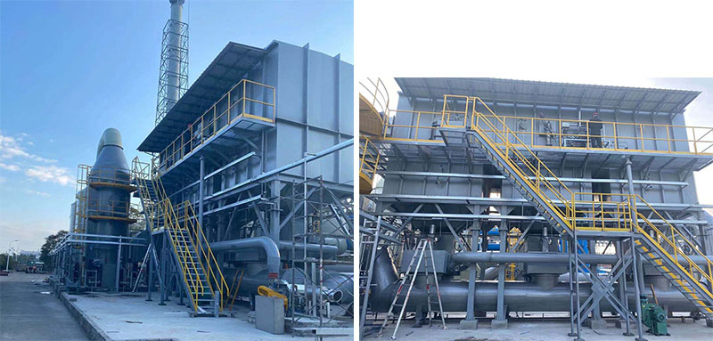 RTO裝置包括至少一組熱回收率高達95%的陶瓷填充床換熱器,可節省升溫所需要的燃料消耗,降低運行成本。風(fēng)機由變頻器控制,以適應不同運的行工況。余熱回收裝部分主要由換熱器、管路、風(fēng)機等組成,對燃燒后排出的氣體余熱回用至生產(chǎn)車(chē)間、生活用水等,節約能源,創(chuàng )造效益。